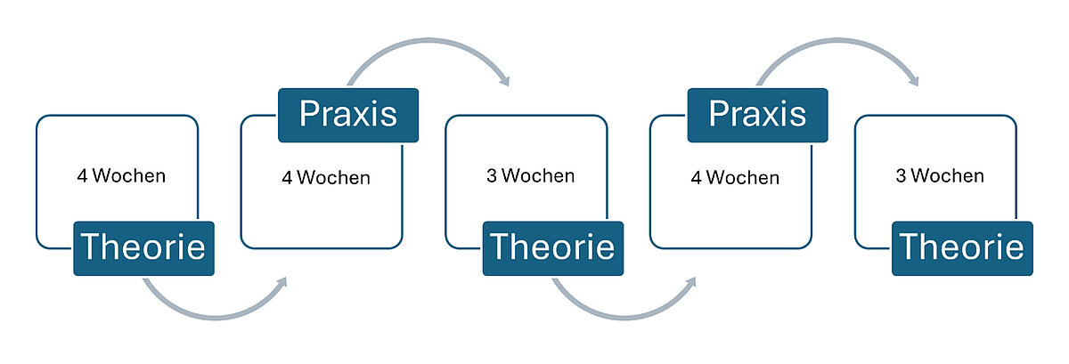 Der Anpassungslehrgang dauert 4,5 Monate und setzt sich aus drei theoretischen und zwei praktischen Teilen zusammen. Die praktischen Einsätze finden bei Ihrem Arbeitgeber statt. Die theoretischen Inhalte werden am Standort Süd des Berliner Bildungscampus für Gesundheitsberufe (BBG) durchgeführt.